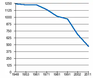 | 1 244 | 1 225 | 1 227 | 1 137 | 1 012 | 971 | 683[2] | 468[1] |