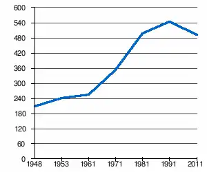 - 1 2 (sq) « Évolution de la population 1948-2011 », sur pop-stat.mashke.org (consulté le ).