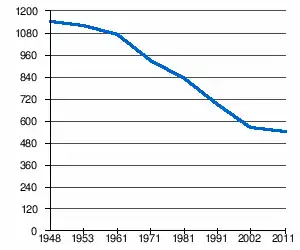 | 1 150 | 1 129 | 1 071 | 928 | 830 | 690 | 565[2] | 451[1] |