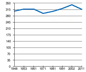 - 1 2 (sr + en) « Livre 20 : Vue d'ensemble comparative de la population en 1948, 1953, 1961, 1971, 1981, 1991, 2002 et 2011, données par localités) » [PDF], pages du recensement de 2011 en Serbie - Institut de statistique de la république de Serbie, (consulté le )