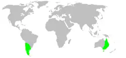 Les espèces de cette famille se rencontrent en Australie, en Nouvelle-Zélande, en Nouvelle-Calédonie, en Argentine et au Chili[1].