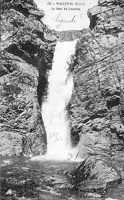 - Le saut de Laurette ou saut de Lorette est une cascade de dix mètres de haut qui est à l'origine d'une légende locale, selon laquelle une jeune bergère prénommée Lorette refusait les avances du seigneur local. Un jour, alors que celui-ci la poursuivait, elle préféra s'élancer du haut de la cascade pour lui échapper, mais le seigneur et son cheval la suivirent dans sa chute, s'écriant « Mal va ! », qui serait l'étymologie de Malleval. Une version raconte que Laurette survécut, une autre que les trois périrent[20],[21].