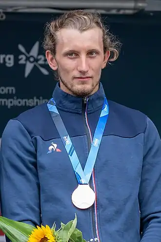 Malo Quéméneur est médaillé de bronze en K1 par équipes aux Championnats du monde de slalom 2022 à Augsbourg[1].