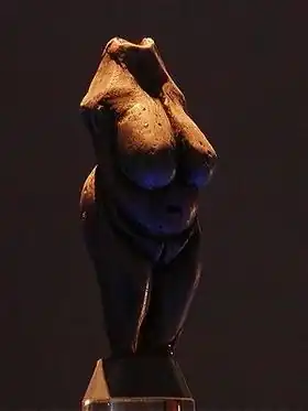 L'art mobilier est plus facile à dater que les peintures dans des grottes car on les trouve dans les mêmes dépôts que des outils et d'autres objets datant de l'ère glaciaire. La plus grande collection d'objet d'art représentant des mammouths, comportant 62 représentations sur 47 plaques, a été découverte dans les années 1960 lors de fouilles sur le site de Gönnersdorf en Allemagne. Il ne semble pas y avoir de corrélation entre le nombre des mammouths dépeints et l'espèce qui était le plus fréquemment chassée, car les os de rennes sont les restes d'animaux les plus souvent retrouvés sur les sites de fouille. Deux propulseurs de lances en forme de mammouths laineux ont également été retrouvés en France[106]. Certains objets n'ont pas été confectionnés là où ils ont été retrouvés, mais ont circulé par le biais du commerce de l'époque[107].