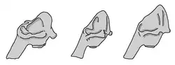 Grâce aux nombreuses découvertes de fossiles de mammouth, il est possible de reconstruire l'histoire évolutive de ce genre au travers d'études morphologiques. Les espèces de mammouths peuvent être identifiées à partir du nombre de crêtes émaillées (ou lamelles) sur leurs molaires : les espèces primitives ont peu de crêtes, et ce nombre augmente progressivement au fur et à mesure que les espèces ont évolué pour se nourrir d'aliments plus abrasifs. Dans un même temps, les couronnes des dents et les crânes deviennent plus profonds et la longueur du crâne mesurée du front à la nuque se réduit pour minimiser le poids de la tête[68],[69]. Les crânes courts et hauts du mammouth laineux et du mammouth de Colomb (Mammuthus columbi) constituent le stade ultime de ce processus évolutif[70].