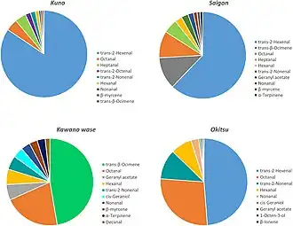 Forte diversité des valeurs d'activité olfactive des composés aromatiques dans 4 cultivars de Satsuma (2024)[65].