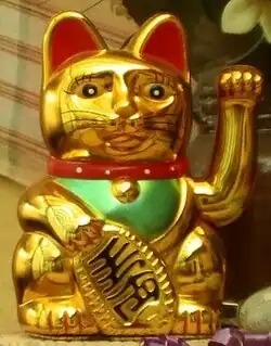 - Un Maneki-neko doré électronique remuant la patte.