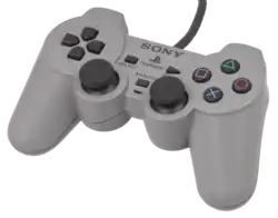 Sortie en 1994, la Sony PlayStation sort avec une première manette (standard). L'originalité vient de sa forme, encore plus ergonomique que les prédécesseurs mais aussi les noms des boutons principaux. Depuis le début les boutons étaient soit désigné par des lettres, soit par des chiffres. La PlayStation met en place un système de symbole, avec Croix, Rond, Carré, et Triangle. Elle possède aussi quatre boutons de tranche R1/R2/L1/L2.