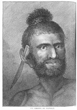 L'intermédiaire entre Cook et les deux Mangaians était Omai, un jeune Tahitien originaire de Huahine que Cook avait embarqué lors de sa seconde circumnavigation et ramené en Europe. Mourua leur apprit que leur chef s'appelait Ruaika[30]. Le Cook quittait Mangaia pour continuer son voyage plus au nord et les îles de la Société afin d'y ramener Omai.