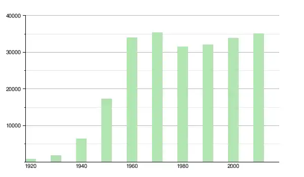 | 1960 | 33 934 | ▲ +95,81 % | |