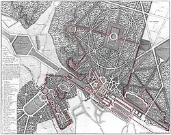 Schéma du "Grand rond" ou "bassin neuf" situé entre le Mail et le Petit Bois de Meudon.