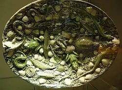En France, les formes et le décor maniéristes de la faïence de Saint-Porchaire ont été produites en quantités limitées pour une clientèle restreinte sensible à la mode à partir des années 1520 aux années 1540, tandis que les compositions surchargées, déconcertantes de réalisme avec leurs serpents et leurs crapauds caractérisent le maniérisme des plateaux de faïence peinte de Bernard Palissy. Comme les Jamnitzers[26], Palissy a réalisé, à l’occasion, des moulages de petites créatures et de plantes pour les appliquer à ses créations.