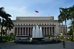 De haut en bas, de gauche à droite : Panorama de Manille, la Basilique du Nazaréen noir, le Bureau de poste central de Manille, la Baie de Manille, le monument Rizal, l'Hôtel de ville de Manille et la Basilique-cathédrale de l'Immaculée-Conception de Manille.
