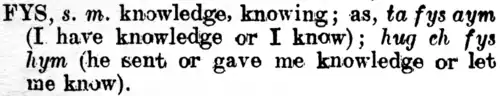 - (en) J. J. Kneen, English-Manx Pronouncing Dictionary, éd. révisée par Robert Thompson, Yn Cheshaght Ghailckagh, Thie Ny Gaelgey, St. Judes, île de Man, 1990.