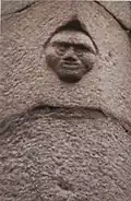 Sur le pignon de la ruelle reliant la rue de l'église à la venelle des 3 avocats, à Lannion, se trouve le visage d'accueil de la maison de Gabrielle Calloët, dame douairière de Coatilliau et épouse de Louis de Kergariou[37].