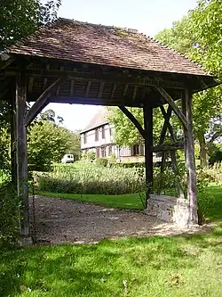 - d'une grange du XIIIe siècle. Modifiée au XVIe siècle, elle se distingue par sa charpente soutenue par deux travées de poteaux en bois, par ses murs-pignons en silex renforcés de contreforts en pierre et par ses murs latéraux à pans de bois avec hourdis de tuileaux.