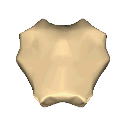 Il a une forme trapézoïdale. Sa grande base mesure de 5 à 6 cm, sa petite base mesure 2 cm pour une hauteur de 4,5 cm et une épaisseur de 1 à 1,2 cm.