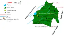 La paroisse civile est la plus étendue des six paroisses de la municipalité dont elle occupe la moitié septentrionale. Sa limite occidentale est marquée par le río Manchango tandis que le territoire est tressé de ses affluents d'orientation nord-est/sud-ouest parmi lesquels du nord au sud, les ríos Negro, Blanco et Misoa.
