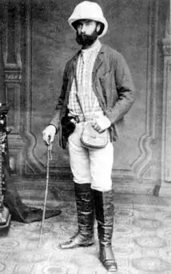 Manuel Iradier y Bulfy, né à Vitoria (Pays basque espagnol) en 1854 et mort à Valsaín (es) (Castille-et-León) en 1911, est un explorateur espagnol ; lors de ses trois voyages en Afrique centrale (1874 - 1877, 1877 - ? et 1884), il est le premier Européen à parcourir certaines régions de l'actuelle Guinée équatoriale avec le soutien de la Société géographique de Madrid ; par des traités signés avec des chefs indigènes, il fait reconnaître la souveraineté de l'Espagne sur environ 14 000 km2. Les documents rapportés par Iradier sont l'une des bases des revendications espagnoles lors de la conférence de Berlin (1884-1885).