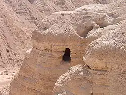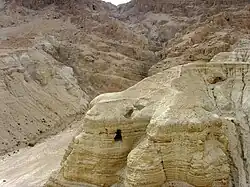 - ↑ Cette proximité explique que leur possible ou éventuelle récupération ne pouvait guère se produire à l'insu de la « secte de Qumrân ». Il est possible que certains dépôts aient été réalisés après la destruction du site (hypothèse des grottes servant de gueniza). cf. Bruno Bioul, Qumrân et les manuscrits de la Mer morte. Les hypothèses, le débat, éditions François-Xavier de Guibert, , p. 103-126.