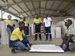 Un autre aspect de la manutention dans la chaîne de production concerne l'approvisionnement des postes de travail, la réception des marchandises venant des fournisseurs et le rangement du stock de produits finis en attendant leur enlèvement pour expédition.