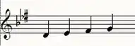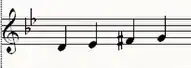 | Sur un mode majeur, avec un ton au-dessus de la tonique et un demi-ton sous la quarte : | ![]() |