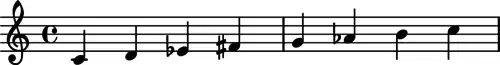 | Partant d'un ton au-dessus de la tonique, l'intermédiaire entre majeur et mineur : | ![]() |