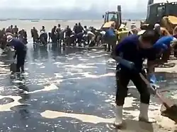 À la fin , 2 000 km de côtes ont été affectées, et la réaction opérationnelle des autorités a eu lieu plus de 50 jours après les premières galettes sur les plages[2].
