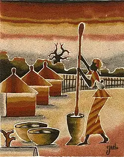 Des artistes locaux réalisent des tableaux de sable — une spécialité africaine — en utilisant différents matériaux naturels pour obtenir les nuances souhaitées. C'est ainsi qu'en 2006 Emé Dogue [1], un enfant du pays, a présenté ses réalisations en France, à Cugnaux.
