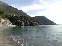 Les montagnes de l'arrière-pays arrivent directement jusqu'à la mer, et créent un contraste visuel pittoresque et de très beaux panoramas ; ils sont couverts de pinèdes et d'une flore spécifique.