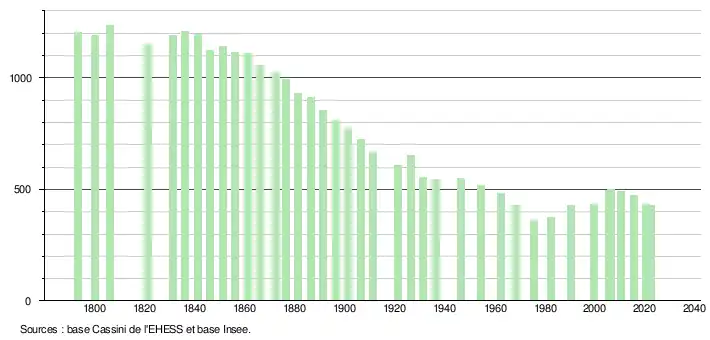 - ↑ Fiches Insee - Populations de référence de la commune pour les années 2006, 2007, 2008, 2009, 2010, 2011, 2012, 2013, 2014, 2015, 2016, 2017, 2018, 2019, 2020, 2021 et 2022.