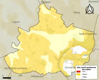 Le retrait-gonflement des sols argileux est susceptible d'engendrer des dommages importants aux bâtiments en cas d’alternance de périodes de sécheresse et de pluie. 71,5 % de la superficie communale est en aléa moyen ou fort (52,8 % au niveau départemental et 48,5 % au niveau national). Sur les 553 bâtiments dénombrés sur la commune en 2019, 448 sont en aléa moyen ou fort, soit 81 %, à comparer aux 70 % au niveau départemental et 54 % au niveau national. Une cartographie de l'exposition du territoire national au retrait gonflement des sols argileux est disponible sur le site du BRGM[19],[Carte 2].