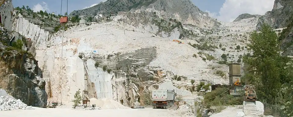 Au début du XXIe siècle, les carrières de Carrare sont l'objet de critiques concernant leur impact sur l'environnement, notamment la surexploitation pour produire du carbonate de calcium, et l'opacité de leur économie[6],[7],[8],[9].