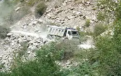Camion des carrières dévalant les pentes.