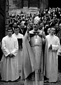 - ↑ Anecdote évoquée par : Henri Fabre, L’Église catholique face au fascisme et au nazisme. Les outrages à la vérité, Éditions EPO et éditions Espaces de Libertés, Bruxelles, 1995, p. 231. L’auteur tire sa source de : Colloque de Grenoble, 1976, Église et chrétiens dans la IIe guerre mondiale. La région Rhône-Alpes, P.U. de Lyon, 1978, p. 206