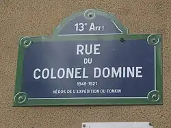 La rue du Colonel-Dominé dans le 13e arrondissement de Paris est baptisée à son nom en 1987.