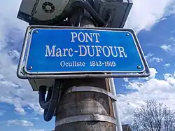 Il existe une avenue Dr-Marc-Dufour à Lausanne, allant de l'avenue Louis-Ruchonnet à l'avenue du Mont-d'Or. Selon la décision municipale de 1930, l'avenue allait jusqu'à l'avenue du Belvédère. la partie inférieure a été ajoutée en 1943. Le pont traversant les voies CFF a alors pris le nom de pont Dr-Marc-Dufour.