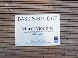- ↑ « Un millier de personnes pour l’inauguration de la base nautique Marc-Modena / Actualités / Site officiel de la ville de Fréjus », sur Site officiel de la ville de Fréjus (consulté le ).