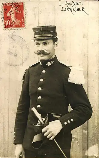 Le , Marcel Issartier intègre l'armée où, sous le matricule 1170[3], il est tout de suite affecté à l'état major comme secrétaire, ce qui n'est pas très courant pour un simple appelé, non diplômé « officiellement ». Le début du XXe siècle voit apparaître l'aviation grâce aux pionniers tels qu'Henri Farman, les Frères Wright ou Louis Blériot, avec 2 repères incontournables : les démonstrations de Wilbur Wright au Mans (été 1908) et la traversée de la Manche par Louis Blériot (). De nombreux événements aéronautiques voient aussi le jour tels que la Coupe Pommery, la Grande Semaine d’Aviation de la Champagne (Reims) ou encore la Grande Semaine de l'Aviation à Bordeaux, en . Il y aurait probablement assisté ou bien suivi de très près.
