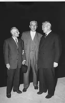 Marcel Petit, Noël Le Maresquier et Pierre Pons devant le plan de la nouvelle École