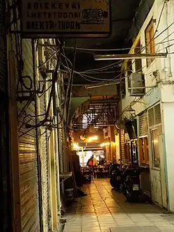 À l'intérieur de la Stoa, on trouve des marchés de poisson, des boucheries, des tavernes et des bars. C'est un lieu de rencontre sociale et d'importance historique pour la ville.