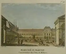 En , la ville de Paris supprime le marché Saint-Martin et cède le terrain à l'État pour y construire l'École centrale des arts et manufactures[4] (aujourd'hui annexe « Montgolfier » du Conservatoire national des arts et métiers, au 2, rue Conté).