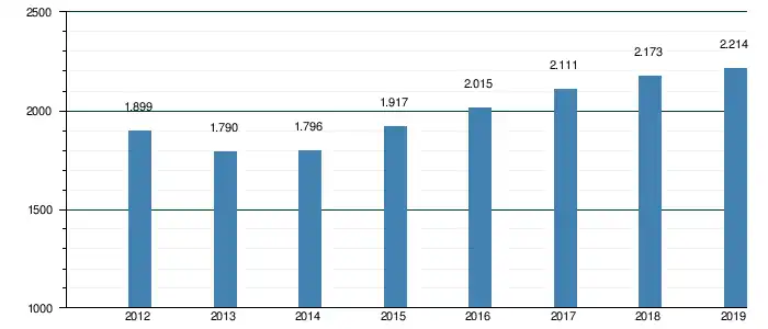 Le marché automobile français des voitures particulières en 2019 s'établit à 2 214 279 unités vendues[ 1] , soit une hausse de 1,9 % par rapport à 2018 (1 188 156 unités)[ 2] .