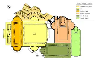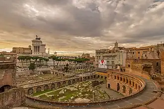 Les marchés de Trajan (Mercati di Traiano, en italien, Macellum Traiani, en latin)[N 1] sont un vaste ensemble monumental de vestiges immobiliers en ruine, des forums impériaux de la Rome antique du IIe siècle, construits sous l'empereur romain Trajan, en même temps que son forum de Trajan. Cet important complexe immobilier semi-circulaire de 6 étages construit en terrasse-gradins au flanc du mont Quirinal, abritait une activité présumée de marché-commerces-tabernae aux étages inférieurs, et de locaux administratifs des forums impériaux aux étages supérieurs. Inauguré en 113, il est reconnu comme un des plus anciens centres commerciaux du monde antique, avec environ 150 boutiques. Il abrite le musée des forums impériaux (museo dei Fori Imperiali) depuis 2007[1],[2].