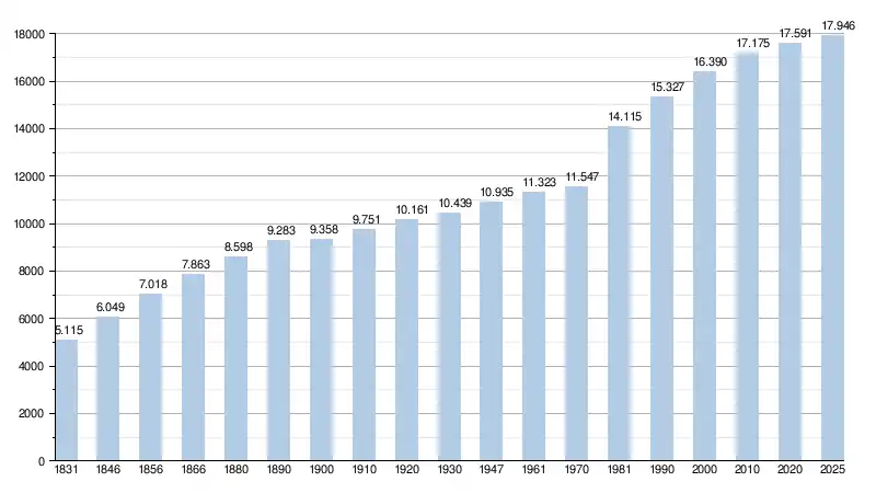 - Source: DGS , de 1831 à 1981=recensements population; à partir de 1990 = nombre d'habitants chaque 1 janvier[9]