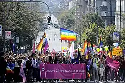 ) - 1 2 3 Le Monde/AFP, « Europride : à Belgrade, des milliers de militants LGBTQ+ défilent malgré l’interdiction », Le Monde, (lire en ligne