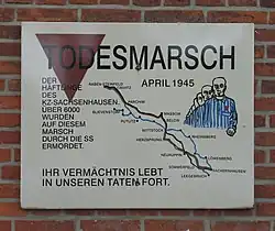 - Les marches de la mort correspondant à l'évacuation des camps de concentration nazis en 1945. Lorsque les Alliés se rapprochèrent trop des camps de concentration et d'extermination allemands situés en territoire polonais, les SS firent évacuer ces camps, dont Neuengamme et Auschwitz, afin de poursuivre le processus en Allemagne. Plusieurs dizaines de milliers de morts (approximativement la moitié des détenus).