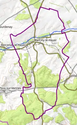 - ↑ « Réseau hydrographique de Marcilly-le-Hayer » sur Géoportail (consulté le 18 mai 2024).