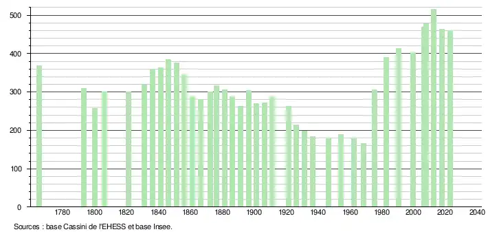 - ↑ Fiches Insee - Populations de référence de la commune pour les années 2006, 2007, 2008, 2009, 2010, 2011, 2012, 2013, 2014, 2015, 2016, 2017, 2018, 2019, 2020, 2021 et 2022.