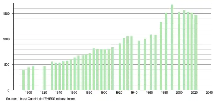 - ↑ Fiches Insee - Populations de référence de la commune pour les années 2006, 2007, 2008, 2009, 2010, 2011, 2012, 2013, 2014, 2015, 2016, 2017, 2018, 2019, 2020, 2021 et 2022.